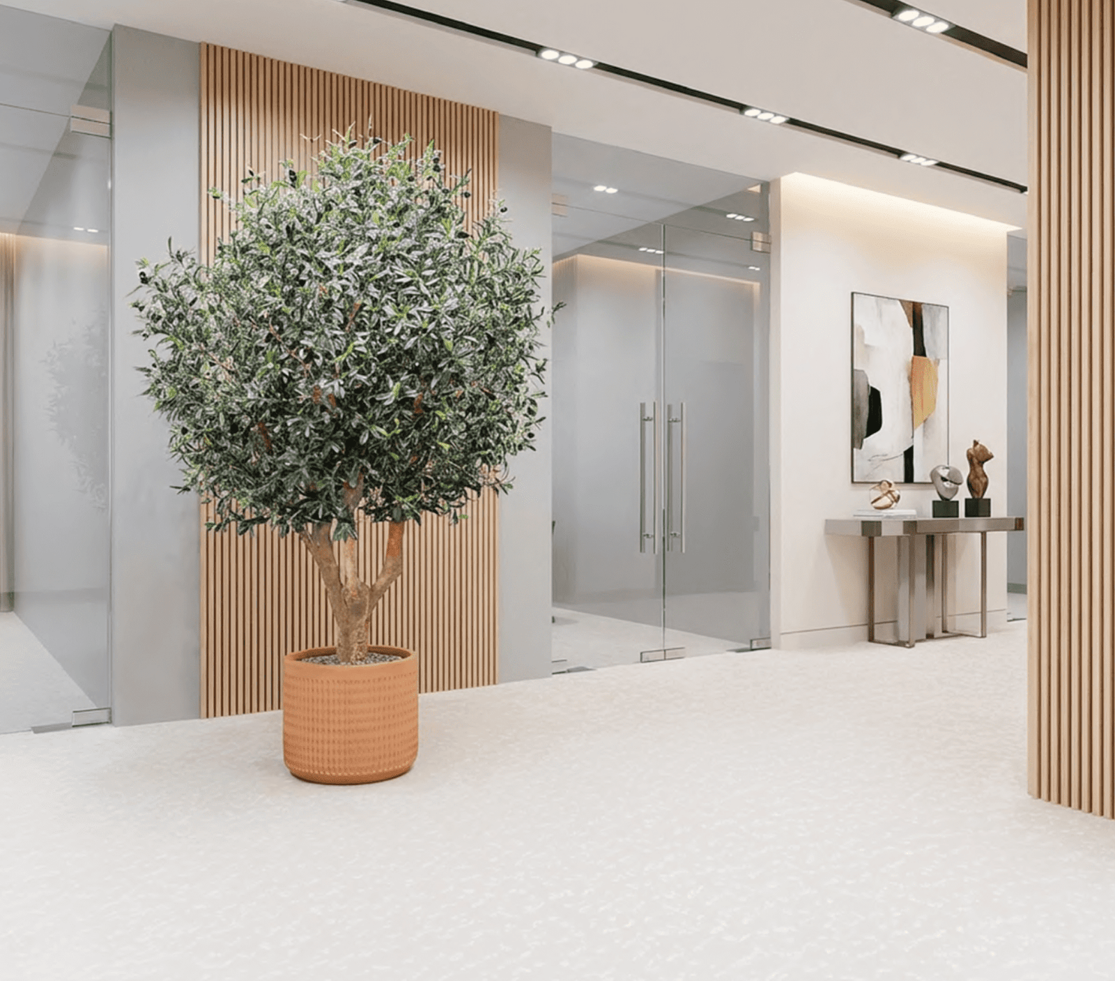 ♻️ Redução de Desperdício: Uma planta artificial dura mais de 10 anos, evitando o ciclo constante de morte e substituição de plantas naturais em espaços sem luz.