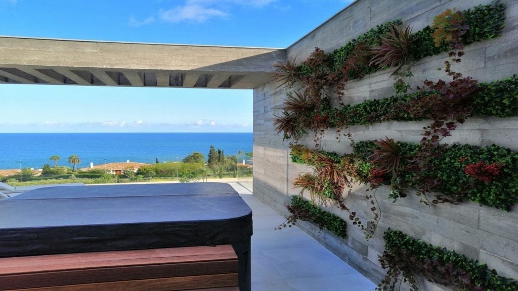 A MossnArt, em parceria com a empresa Ecogrupo (Ecossistemas), desenvolveu um projeto de paisagismo de alto impacto para uma moradia exclusiva no Algarve. Através da instalação de faixas de jardim vertical artificial, transformámos as paredes de betão do terraço num elemento decorativo dinâmico, provando que os detalhes fazem toda a diferença na arquitetura residencial de luxo.