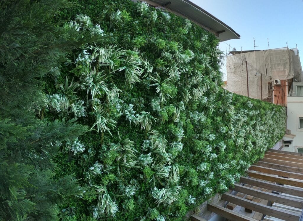 2. Eficiência e Durabilidade: As soluções artificiais de alta gama da MossnArt mantêm a sua exuberância sem custos operacionais de jardinagem, sendo totalmente hipoalergénicas.
