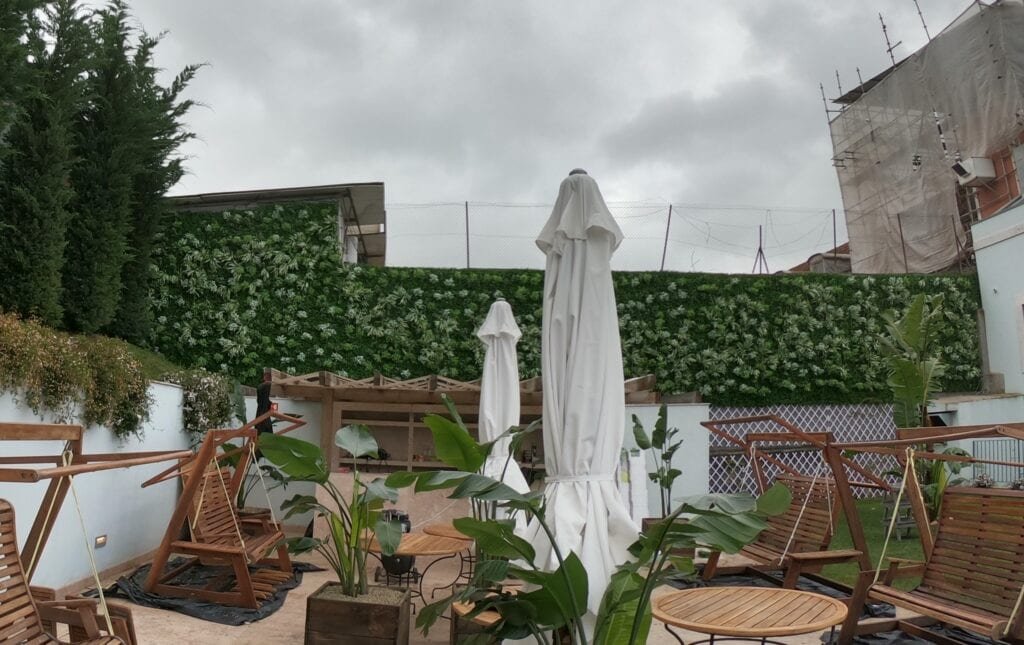 O desafio central neste hotel de 5 estrelas era criar uma barreira visual verde que garantisse privacidade e frescura na zona da piscina, sem as limitações de manutenção ou sazonalidade das plantas naturais num espaço de alta circulação. A solução da MossnArt passou por um jardim vertical artificial externo de alta densidade, que reveste as paredes do bar da piscina, integrando-se organicamente com a arquitetura histórica e contemporânea do palácio.