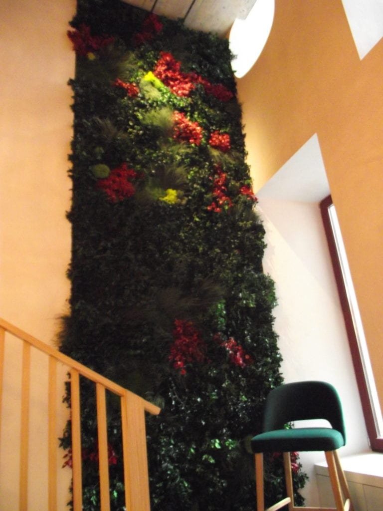 - Conforto Acústico: Em espaços com pé direito elevado, o jardim vertical atua como um excelente absorvente sonoro, reduzindo a reverberação e tornando o ambiente mais íntimo e agradável.